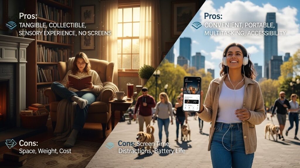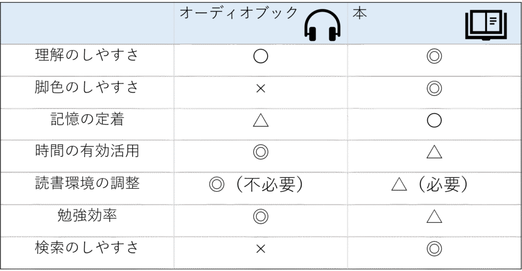 本(紙/電子書籍)とオーディオブック、それぞれに特徴があります。