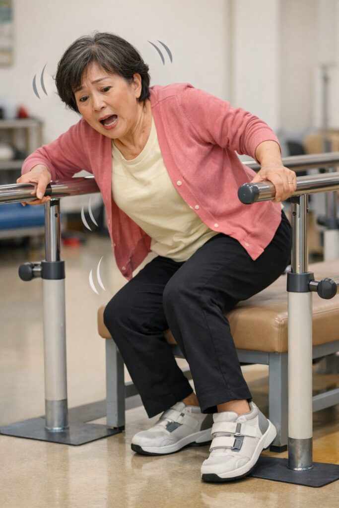 ・平行棒内でも急に立ち上がろうとしてふらつき・転倒リスクが高い