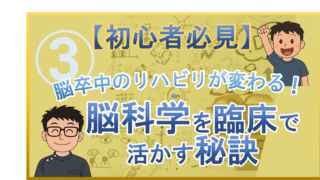 脳関連"疾患" ③【初心者必見】脳卒中のリハビリが変わる!脳科学を臨床で活かす秘訣 脳卒中リハビリに自信がない?脳科学を臨床で活かす秘訣を公開! 脳科学を学び臨床に活かしたい初心者向けに、脳科学の基礎から実践までを徹底解説。おすすめの書籍や効果的な勉強法も紹介し、あなたのリハビリを劇的に変えます。 2025.04.25 脳関連"疾患"